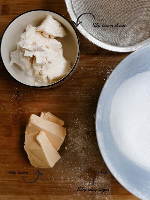- Add remaining icing sugar together with all your cream cheese in chunks and vanilla.