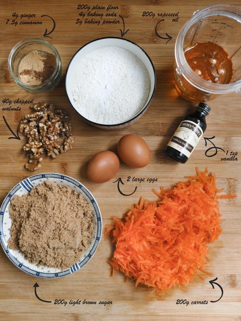 Like any oil based cake the process is fairly easy and quick. First grate your carrots! When I used to work as a cake decorator we would cut the carrots roughly and place them in the blender until just chopped. The result is the same whether you grate or chop finely in a blender so it is entirely up to you. I normally blend them as it takes half the time which means a quicker way to indulgence! After your carrots are prepared mix eggs, sugar, vanilla and oil together on low speed until incorporated. You don’t have to use rapeseed oil; it could really be any neutral oil like vegetable or sunflower. Rapeseed is the ideal as it is the most neutral but also probably the most expensive, so don’t worry and use what you have! Mix all your dry ingredients together and add in two batches scraping down and up between each addition. For my spices I use cinnamon and ginger but you can use whatever you fancy like nutmeg, cloves or even zests like lemon and orange. There are really no limits to flavours. Add carrots and pecans or walnuts and mix on medium speed for 10 to 15 seconds. Scrape mix down and check if mix is incorporated. And you are done! Easy right?! You can either bake the mix straight away or it keeps in the fridge perfectly fine for 2-3 days. Bake at 140C for 45 minutes to 1 hour. You will notice with most of my cakes that the temperature is quite low compare to other recipes out there. That is because low and slow really does give you the best results. Good things come to those who wait right?!