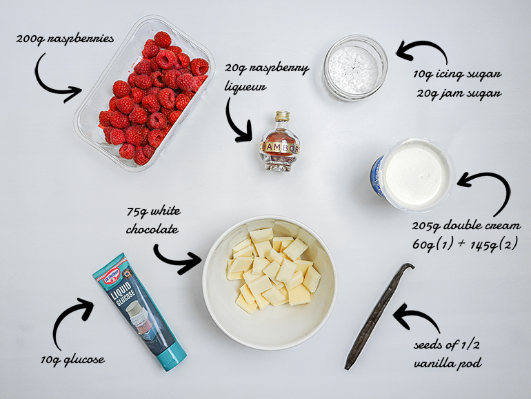 Did you guys know that there is an international day about pretty much everything?! There is even an international Yorkshire pudding day which I guess for the Northerners is just another day! As today is international raspberries and cream day I thought I would honour this day by making some very decadent raspberries and cream French macarons. But let’s get real here. Everyone, absolutely everyone is terrified of making them at home. They are at times tricky but are you really going to let a glorified cookie win? Having been a professional pastry chef for the last 8 years I can honestly tell you that I have been defeated enough times to now being confident in my macaron skills. For the filling I will be using a vanilla whipping ganache which is nothing more than a looser ganache that you can whip! A wonderfully acidic raspberry coulis will also go in the middle giving the macarons a much needed tanginess.
